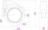 Universal compact aluminium slimline half coupler with quick release clamp for pipe and truss mounting fixtures. High-strength aluminum construction.