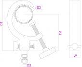 Sort | | D1 (1mm) | 130mm | | D2 (1mm) | 32 - 63mm | | D3 (1mm) | 10mm | | D4 (1mm) | 92mm | | W (1mm) | 22mm | | Gevindbolt | M10 | | Max. vægtbelastning pr. stykke | 50kg | | Vægt (kg) | 0,30 |