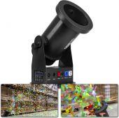 The CC1200 confetti launcher is a quieter alternative to the confetti cannon. Coloured confetti is loaded into the machine and is then gradually blown out, instead of being shot out with compressed air. This launcher can be controlled manually or via DMX. Almost all kinds of confetti can be used.