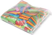 Bag filled with 1KG rectangle 55 x 17mm multi-colour confetti. BeamZ confetti is made of tissue paper and is slow falling. Flameproof according to DIN4102-1, class B1 certified. For use in the BeamZ CC1200 Confetti Launcher (160.762) - 1KG Multi coloured confetti