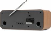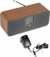 | Produktfarve | Sort, træ | | Afspilningsmuligheder | BT streaming, FM radio, DAB+ radio, internetradio, AUX-indgang | | Indgangsforbindelser | 3,5 mm jack | | Udgangsforbindelser | 3,5 mm jack | | Effekt | 40W | | Strømforsyning | 100-240VAC 50/60Hz (12V adapter) | | Dimensioner (L x B x H) | 125 x 282 x 114 mm | | Vægt | 1,19 kg | | Medfølgende tilbehør | Strømadapter | pdf