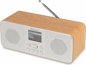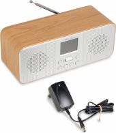 | Produktfarve | Lysebrun, sølv | | Afspilningsmuligheder | BT streaming, FM radio, DAB+ radio, internetradio, AUX-indgang | | Indgangsforbindelser | 3,5 mm jack | | Udgangsforbindelser | 3,5 mm jack | | Effekt | 40W | | Strømforsyning | 100-240VAC 50/60Hz (12V adapter) | | Dimensioner (L x B x H) | 125 x 282 x 114 mm | | Vægt | 1,19 kg | | Medfølgende tilbehør | Strømadapter | pdf