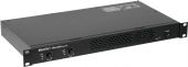 | Power supply: | 100-240 V AC, 50/60 Hz | | Power consumption: | 210 W 1/8 power | | Protection class: | Protection class I | | Output power: | 2 x 510 W RMS (4 ohms) 2 x 300 W RMS (8 ohms) 1000 W RMS bridged (8 ohms) | | Power connection: | Mains input via P-Con (blue), mounting version power supply cord with safety plug (provided) | | Frequency range: | 30 - 20000 Hz | | S/N ratio: | >100 dB | | THD: | <0.02 % at 1 kHz | | Cooling: | Cooling fan | | Impedance: | Input: 20 kOhm , bal. Input: 10 kOhm , unbal. | | Gain: | 36 dB | | Housing color: | Black | | Circuitry: | Class D | | Control elements: | Power switch, level control per channel, mode switch (stereo/bridged), groundlift selector | | Controls: | Short-circuit; overheat; DC voltage; power on/off transients; softstart; power on/off transient; limiter | | Status LED: | Power, signal, protect, limit | | Connections: | Input: line via 2 x 3-pin XLR Link: line via 2 x 3-pin XLR Output: speaker via 2 x speaker built-in socket (F) | | Input sensitivity: | 1.25 V | | Housing design: | (19") 48.3 cm rack installation 1 U | | Dimensions: | Width: 48.3 cm Depth: 24 cm Height: 4.45 cm | | Weight: | 4.03 kg |