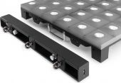 Robust metal rigging-bar med 3x M10 fly-punkter, der kan låses sammen horisontalt med andre rigging-barer via quick locks for hurtig og enkel installation.