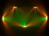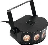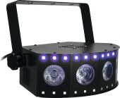 |  | LED spotlight with twofold effects: 3in1 TCL RGB LEDs, dynamic color effects and strobe 4in1-LED-Effektscheinwerfer mit RGB+UV-LEDs und Stroboskop - Individual control of all RGB+UV and RGB strobe LEDs for use as blacklight, stroboscope or PAR spotlight