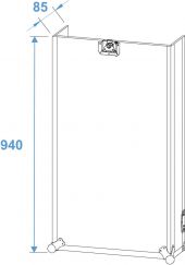 | Maximum load: | 100 kg | | Removable covers: | 3 pc/pcs | | Aluminum profile frames: | 30 mm | | Case handle: | 4 pc/pcs | | Lock: | Butterfly lock: 5 pc/pcs | | Transport aid: | 4 x castors with 2 locking brakes | | Material: | Plywood multi-layer glued, 9 mm | | Color: | Black, laminated | | Front panel width: | 19" | | Mounting height: | Top with adjustable tilt angle approx. 44.5 cm (10 U) Front approx. 75.5 cm (17 U) | | Mounting depth: | 570 mm | | Housing design: | 17 U | | Dimensions: | Width: 55 cm Depth: 61.5 cm Height: 103.5 cm | | Weight: | 34.20 kg |     |  |  |