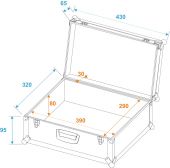 | Aluminum profile frames: | 22 mm | | Carrying handle: | 1 pc/pcs | | Stop hinge: | 2 pc/pcs | | Lock: | Spring lock: 2 pc/pcs with shut-off function | | Material: | Plywood multi-layer glued, 7 mm | | Color: | Black, laminated | | Inside dimensions: | 39 cm x 29 cm x 8 cm | | Dimensions: | Width: 42 cm Depth: 32 cm Height: 14 cm | | Weight: | 3.90 kg |