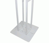 The DJP170 is an adjustable height podium stand with foldable baseplate for lighting fixtures, such as moving heads, PA speakers or various other display uses. Unlike other adjustable stands that use wing nuts to change the height of the stand, the DJP170 is adjusted for height instantly by squeezing our specially designed Vonyx easy internal adjusting mechanism, which releases all four locks at once, with one hand while easily moving the top to the height you prefer with the other. The podium stand is finished with a powder-coated finish for good looks and durability. A black and a white lycra cover, a soft carrying bag and non-slip foam pads are included.