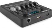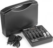 The DMX65W mini DMX controller is a compact light-control-unit, specially designed for use with for example wireless BeamZ Uplighters. You can wirelessly synchronize an unlimited number of W-DMX fixtures simultaneously, and operate them using the simple navigation on the OLED digital display. The DMX65W controller with rechargeable battery can be used as a portable, handheld device or wall mounted for permanent installation. Supplied in robust plastic carrying case.