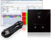 OBS: Vi har kun 1 stk. af denne vare. The dimmer switch of the 21st century is here and is one of the most exciting developments within the architectural lighting market. The STICK-GU2 provides a simple yet powerful solution for your RGB lighting control needs. The lighting levels, colours and pre-loaded RGB effects can be programmed from a PC, Mac, Android, iPad or iPhone using the included software. The GU2 has a simple interface with basic touch-sensitive buttons that include a: power button, mode changer, and easy switching between the colour/scene/dimming aspect of your installation. - Standalone wall mounted DMX controller