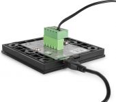 | Product colour | Black | | DMX connection | PCB Terminal Block | | Power supply | 5V via USB | | Dimensions (L x W x H) | 85 x 85 x 11 | | Weight (kg) | 0,20 |