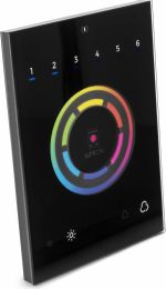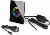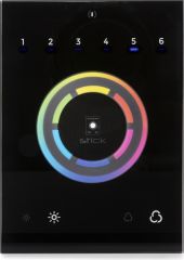 OBS: Vi har kun 2 stk. af denne vare. Den STICK-CW4 programmerbare lyskontroller, til RGB og RGBW belysning, er designet omkring en berøringsfølsom farvehjul. Kontrolleren kan programmeres via USB fra en PC eller Mac ved hjælp af ESA2 eller Arcolis, Lightpad og Easy Remote Pro software. Op til 36 scener kan gemmes i kontrolleren og direkte kaldes frem via seks berøringsfølsomme scene-knapper. Bare tilslut enheden, start programmeringssoftwaren, lav showet og tryk til sidst på "gem show"-knappen for at gemme showet i den selvstændige hukommelse. En knap placeret i midten af farvehjulet kan bruges til at skifte mellem scener eller nulstille en farveændring. Ideel til LED, RGB, RGBW eller enhver DMX-lysenhed, er STICK-CW4 designet til at tilbyde det perfekte glasbelysningskontrolsystem til arkitektoniske og bygningsmæssige formål (både boliger og kommercielle). - Enkeltstående flad vægmonteret lyskontroller