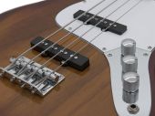 | Pickup: | 2 x single coil | | Version: | Right hand version | | Neck: | Bolt-on neck made of maple, Fingerboard: Blackwood 20 frets | | Body: | 4/4 JB-form Limewood painted | | Pickguard: | White | | Scale length: | 864 mm | | Number of strings: | 4 | | Regulator: | 2 x volume, 1 x sound | | Bridge: | JB-style | | Hardware: | Chromium-plated | | Color: | Sunburst, high-gloss | | Weight: | 4.25 kg |