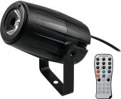 | Attachment system: | Mounting bracket | | Weight: | 3.03 kg | | Noise classification: | Class 1 (very slight noise, suitable for noise-sensitive environments) | | Spotlight | | | Power supply: | 100-240 V AC, 50/60 Hz | | Power consumption: | 5 W | | IP classification: | IP20 | | Protection class: | Protection class II | | Power connection: | Fixed power supply cord with Euro plug | | Lamp type: | LED lamp | | LED type: | 1 x 5 W SMD 3535 4in1 QCL RGBW (homogenous color mix) | | Cooling: | Passive convection cooling | | Control: | Sound to light via microphone; stand-alone; IR remote control | | Beam angle: | 5° | | Beam angle (1/2 peak): | 5° | | Beam angle (1/10 peak): | 9° | | Housing color: | Black | | Dimensions: | Width: 12.1 cm Depth: 14 cm Height: 13.7 cm | | Weight: | 0.43 kg | | Mirror ball | | | Dimensions: | Diameter: Ø 30 cm | | Motor | | | Power supply: | 230 V AC, 50 Hz | | Power consumption: | 4.00 W | | Power connection: | Fixed power supply cord with safety plug | | Speed: | 1.5 RPM | | Maximum load: | 4 kg | | Dimensions: | Height: 8.5 cm Diameter: Ø 12 cm | | Remote control | | | Battery: | 1 x button cell 3.0 V CR2025 lithium manganese built-in |