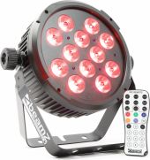 BeamZ BT310 Flat PAR 12x 8W 6-i-1 LED'er med RGBA farvemix, DMX, Musikstyring og Fjernbetjening