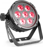 En høj power parcan i ABS-hus med 7x 6W RGBW (4-i-1) LED'er. Designet til at være flad, så den kan passe ind i dit alutruss og udstyret med IEC ind / ud til sammenkobling af daisy chaining. BT270 har forudindstillede programmer, der kan bruges i stand-alone mode. I DMX-indstillingerne er der valg af en 2,3- og 4-kanalstilstand med forudindstillede farvemakroer eller en 8-kanals tilstand, hvor du kan styre hver enkelt farve individuelt. Det samme kan ske i stand-alone tilstand med den medfølgende fjernbetjening. ABS kabinet og dobbeltstativ gør BT270 også ideel til udlejning, letvægts og nem at installere.