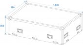 | Maximum load: | 120 kg | | Removable covers: | 1 pc/pcs | | Aluminum profile frames: | 30 mm | | Case handle: | 8 pc/pcs | | Lock: | Butterfly lock: 10 pc/pcs | | Transport aid: | 6 x castors with 2 locking brakes | | Material: | Plywood multi-layer glued, 7 mm | | Color: | Black, laminated | | Inside dimensions: | 161.5 cm x 76.5 cm x 13.5 cm | | Outer compartment: | 70 cm x 76.5 cm x 13.5 cm | | Device compartment: | 70 cm x 67 cm x 12 cm | | Middle compartment: | 16 cm x 76.5 cm x 6.5 cm | | Dimensions: | Width: 168 cm Depth: 82 cm Height: 80.5 cm | | Weight: | 76.80 kg |