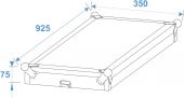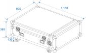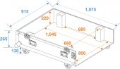 | Maximum load: | 100 kg | | Removable covers: | 2 pc/pcs | | Aluminum profile frames: | 30 mm | | Case handle: | 4 pc/pcs | | Lock: | Butterfly lock: 6 pc/pcs | | Transport aid: | 4 x castors with 2 locking brakes | | Material: | Plywood multi-layer glued, 10 mm | | Color: | Black, laminated | | Inside dimensions: | 104.5 cm x 85 cm x 22 cm | | Device compartment: | 104.5 cm x 66 cm x 22 cm | | Dimensions: | Width: 115 cm Depth: 92.5 cm Height: 50 cm | | Weight: | 44.10 kg |