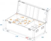 | Maximum load: | 50 kg | | Aluminum profile frames: | 30 mm | | Case handle: | 4 pc/pcs | | Lock: | Butterfly lock: 2 pc/pcs | | Transport aid: | 4 x castors with 2 locking brakes 4 x built-in stacking trays in the cover | | Material: | Plywood multi-layer glued, 10 mm | | Color: | Black, laminated | | Device compartment: | 22 cm x 22 cm x 26.5 cm | | Accessory compartment: | 12.5 cm x 28 cm x 23.5 cm | | Inside dimensions: | 113.5 cm x 58 cm x 26.5 cm | | Accessory compartment: | 12.5 cm x 19 cm x 23.5 cm | | Dimensions: | Width: 119 cm Depth: 63.5 cm Height: 50 cm | | Weight: | 33.00 kg |   |  |  |  | |