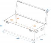 | Maximum load: | 100 kg | | Aluminum profile frames: | 30 mm | | Case handle: | 4 pc/pcs | | Stop hinge: | 3 pc/pcs | | Lock: | Butterfly lock: 2 pc/pcs | | Material: | Birch multiplex, 7 mm | | Color: | Dark brown, laminated | | Inside dimensions: | 140 cm x 40 cm x 35 cm | | Dimensions: | Width: 144 cm Depth: 44 cm Height: 44 cm | | Weight: | 18.30 kg |