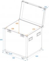 | Maximum load: | 100 kg | | Aluminum profile frames: | 30 mm | | Case handle: | 4 pc/pcs | | Stop hinge: | 2 pc/pcs | | Lock: | Butterfly lock: 2 pc/pcs | | Transport aid: | 4 x castors with 2 locking brakes | | Use of brands: | Branded hardware | | Material: | Birch multiplex, 9 mm | | Color: | Dark brown, laminated | | Inside dimensions: | 62 cm x 57.5 cm x 62.5 cm | | Dimensions: | Width: 66 cm Depth: 62 cm Height: 92 cm | | Weight: | 26.15 kg |