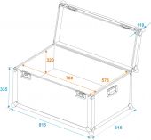 | Maximum load: | 50 kg | | Aluminum profile frames: | 30 mm | | Case handle: | 2 pc/pcs | | Stop hinge: | 3 pc/pcs | | Lock: | Butterfly lock: 2 pc/pcs | | Transport aid: | Stackable steel ball corners | | Material: | Plywood multi-layer glued, 7 mm | | Color: | Black, laminated | | Inside dimensions: | 78 cm x 57.5 cm x 32 cm | | Dimensions: | Width: 82 cm Depth: 62 cm Height: 46 cm | | Weight: | 13.30 kg |   |  |  |