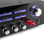 |  | OBS: Vi har kun 2 stk. af denne vare. AV120BT fra Fenton er en alsidig 2 x 60W HiFi-forstærker, der leverer den perfekte lyd til din hjemmebiograf. En anden praktisk funktion ved denne kompakte HiFi-forstærker er den integrerede USB/SD-medieafspiller, der giver dig mulighed for at afspille dine yndlings MP3-sange direkte fra et USB- eller SD-kort. Med USB-port, Bluetooth, bas/diskant og ekko kontrol og to mikrofonindgange. - 2 x 60W HiFi-forstærker