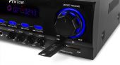|  | AV440 er en moderne 2-kanals forstærker med 2x 200W, udstyret med en multimedieafspiller og blåt oplyste knapper. Den leveres med en fjernbetjening, to mikrofonindgange med tonekontrol til karaoke-applikationer, ekko-kontrol og en dynamisk skærmdisplay. Den er også perfekt til brug som HiFi og baggrundsmusik. - 2x 200W Digital forstærker