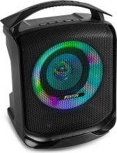 Mini Festhøjttaler på batteri "Sputnik 1" med Bluetooth og farverigt LED lys på fronten, 40W
