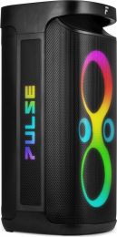 Create the ultimate indoor or outdoor dance fest with the Pulse Party Speaker series, featuring a spectacular beat- synchronized light show across the entire front and both sides. Thanks to the built-in powerful rechargeable battery, wireless microphone and numerous input options; USB and micro SD card, you can easily sing along to all your favourite songs. It’s also possible to wirelessly connect two Pulse speakers to create an even more powerful stereo sound. When it's time to switch up the scene, the Pulse Party Speaker series is IPX4 water-resistant, so you can take your tunes to the beach or lake. Turn up the fun!