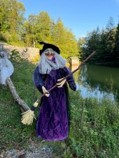 |  | Standing figure: witch with broom Stehende Hexenfigur mit Besen - Powered by a battery/battery pack