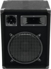 | Power: | Program: 400W Rated: 200W RMS | | Frequency range: | 50 - 18000 Hz | | Sensitivity: | 95 dB (1W/1m) | | Impedance: | 8 ohms | | Attachment system: | Flange: Ø 35mm | | Connections: | Input: speaker via 2 x speaker built-in socket (F) | | Speaker: | 1 x woofer 10" Basket material: steel Conematerial: cardboard/paper 1 x piezo 1 x horn | | Type of speaker: | Compact cabinet speaker | | Recessed carrying handle: | 2 pc/pcs | | Material: | , 16 mm | | Color: | Black | | Dimensions: | Width: 36 cm Depth: 31 cm Height: 46.5 cm | | Weight: | 10.20 kg |   |  |  |  | |