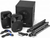 Aktivt højttalersystem MX700, 2 stk. 8" Højttalere med stativ + 12" subwoofer, inkl. kabler! |