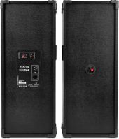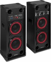 | Product colour | Black | | Speaker type | Active (amplified) | | Output power: Max | 800W | | Output power | 400W | | Tweeter type | Piezo | | Diameter woofer | 2x 8" | | Magnet type | Ferrite | | SPL max | 124dB | | Frequency response | 45Hz - 20.000Hz | | Impedance | 8 Ohm | | Playback options | BT streaming, USB, SD, Line input, Microphone (input) | | Input connections | 6.3mm Jack, RCA, SD, USB | | Dimensions: Per speaker | 313 x 250 x 763mm | | Weight (kg) | 15,66 | | Included accessories | Power cable, Speaker cable |