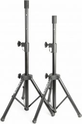 |  | LS02K er et sæt med 2 kompakte højttalerstativer med justerbar højde og er kompatible med enhver type højttalere med en huldiameter på ca. 35 mm. Disse sortanodiserede teleskopiske stativer er lavet af stål for holdbarhed og stabilitet, og det sammenklappelige design gør det nemt at opbevare og transportere. Stativets ben og stang låses fast med let anvendelige drejeknapper og har en ekstra sikkerhedslås for at undgå pludselige højttalerfald. Stativerne er i stand til at bære udstyr op til 20 kg i vægt. - Sæt med 2 kompakte, bærbare og nemme at opsætte højttalerstativer