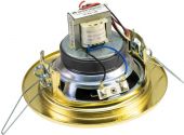 | Power: | Program: 12W Rated: 6W RMS | | Frequency range: | 100 - 20000 Hz | | Sensitivity: | 89 dB (1W/1m) | | Max. SPL: | 100 dB | | Impedance: | Public address systems 100V | | Power tapping: | 3W; 6W RMS via no connector/cable only switchable | | Speaker: | 1 x full range loudspeaker 4" | | Type of speaker: | Flush-mount speaker | | Color: | Gold | | Mounting dimensions: | Ø 11 cm | | Dimensions: | Depth: 8 cm Diameter: Ø 13.5 cm | | Weight: | 0.53 kg |  |  |  |  | |