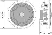 |  | 8" flush-mount speaker, public address systems 100V, 40 W RMS, Ø 24 cm 8"-Einbaulautsprecher, 100 V, 40 W RMS, Ø 240 mm - 2-way system for excellent sound playback