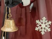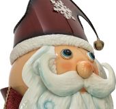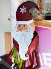 Handcrafted Santa Claus figure made of metal, with gift and bell, color finish In Handarbeit hergestellte Santa-Claus-Figur aus Metall, mit Geschenk und Glocke, farbig lackiert - The black boots have shiny bootlegs, the toe caps are hammered