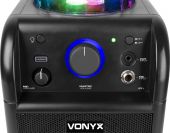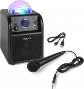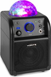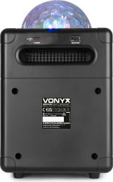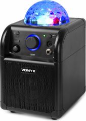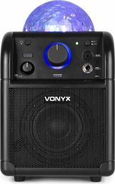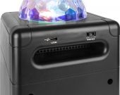 The SBS50B wireless speaker with party light is a powerful all-in-one unit that turns any indoor space into a dazzling dance hall. Simply pair it with your BT-enabled phone or tablet to stream wireless, high fidelity music. Built-in LED lights rotate and pulsate to the beat, creating a spectacular light show on your walls and ceiling. The down-facing subwoofer on the bottom gives an extra bass to your music.