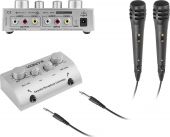 OBS: Vi har kun 3 stk. af denne vare. The Vonyx AV430 is a compact home karaoke system designed to plug and play with almost any existing home HiFi set-up. The kit includes 2 corded karaoke microphones and all the cables you need. A must have for a successful karaoke night! - 2 Microphones included
