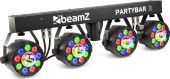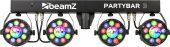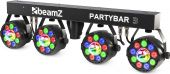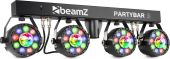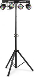 Partybar 3 er et sensationelt lys show udstyret med 4 PAR dåser (RGB LED'er) med indbygget Magic Ball. Denne Partybar 3 er plug and play og kan styres via DMX, IR fjernbetjening eller auto- og lydaktiverede programmer, der kan vælges fra kontrolpanelet. En stativstativ er inkluderet til hurtig og nem opsætning. Specielt designet til faser, fester, entertainere og alle andre specielle arrangementer.