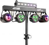 MAX PartyBar-serien består af en række komplette sæt med spektakulære LED-lyseffekter. Alle sæt er udstyret med højintensitets-LED'er i forskellige farver. Denne serie af Party Bars er plug and play og kan styres via DMX, IR-fjernbetjening eller automatisk og lydaktiverede programmer, der kan vælges fra kontrolpanelet med LED-display og trykknapper. Et tripod stativ er inkluderet til hurtig og nem opsætning. Specielt designet til scener, fester, underholdere og alle andre specielle begivenheder.
