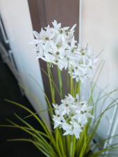 | Setup: | Falls in shape by itself | | Standing/fixation: | Gardening pot with decorative stones | | Material: | PE ND polyethylene | | Color: | Green/white | | Foliage: | Material: PE ND polyethylene | | Flowers: | Pieces: approx. 3 pc/pcs Color: white P(material: )textile | | Decor style: | Modern living | | Season: | Spring | | Dimensions: | Height: 120 cm | | Weight: | 1.50 kg |