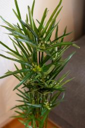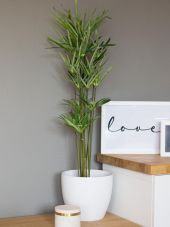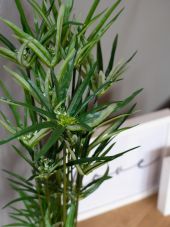 | Standing/fixation: | Gardening pot covered with artificial earth | | Color: | Green | | Foliage: | Approx. 192 leaves Material: textile | | Decor style: | Woods and meadows; houseplant | | Season: | Spring | | Dimensions: | Height: 76 cm | | Weight: | 1.30 kg |