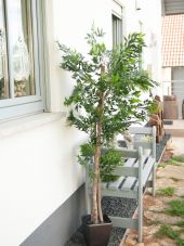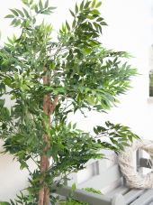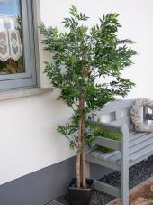 | Trunk: | 3 x natural trunk | | Standing/fixation: | Gardening pot | | Color: | Green | | Foliage: | Approx. 3360 leaves Material: textile | | Decor style: | Woods and meadows; houseplant; modern living | | Season: | Summer | | Dimensions: | Height: 165 cm | | Planter | | | Dimensions: | Diameter: Ø 22 cm |
