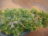 Pencil cedar bonsai, ideal as table decoration Bonsai Pinie, hervorragend als Tischdeko geeignet - Artificial trunk with aerial roots; overgrown with moss