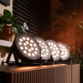 Tag din fest til næste niveau med Comet Party Par-serien. Dette sæt med 4 Par LED-lyseffekter er udstyret med kraftfulde LEDs og leverer en imponerende lysstyrke til en uovertruffen pris. Kabinettet, fremstillet af holdbar plastik, er både funktionelt og robust. Med den medfølgende fjernbetjening kan farverne justeres individuelt, eller du kan vælge et af de automatiske lysshow-programmer. Lad festen begynde!