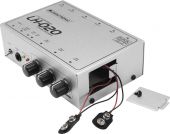 | Power supply: | 12V DC 150 mA Or 18V DC | | Pin configuration: | Inside - / outside + | | Protection class: | Protection class III | | Power connection: | Mains input via coaxial power connector (M) mounting version power supply cord with AC adapter (provided) Battery/battery pack | | Battery: | 2 x 9.0 V E block (not included) | | Frequency range: | 25 - 16000 Hz | | S/N ratio: | >75 dB | | THD: | <0.02 % at 1 kHz | | Phantom power: | Or 18 V DC | | Impedance: | Input: 600 Ohm 600 Ohm | | Gain: | 60 dB | | Housing color: | Silver | | Control elements: | Power switch, low cut switch, phantom power switch, level control per channel | | Status LED: | Power, clip | | Connections: | Input: microphone via 3 x 3-pin XLR Output: microphone via 1 x 3-pin XLR Output: headphones via 1 x 6.3 mm jack socket (stereo) mounting version | | Input channels: | 3 x mono via XLR, channel control via rotary dial | | Max. level: | Input: -14 dB Output: +14 dB | | Housing design: | Desktop console housing | | Dimensions: | Width: 14.3 cm Depth: 9.3 cm Height: 4.5 cm | | Weight: | 0.76 kg |   |  |  |  | |