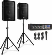 |  | VX210 er et komplet PA-lydsystem med en 4-kanals mixer med forstærker og multimedieafspiller, to 10" fuldtonshøjttalere og alle andre nødvendige tilbehør. Systemet inkluderer også en kablet mikrofon og to højttalerstativer, hvilket gør det til et komplet plug-and-play-system.