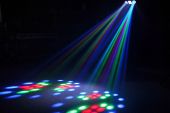 Musikstyret LED lyseffekt med strobefunktion i midten, omgivet af lysudgange på hver side der med LED'er i 3 farver skaber flotte og imponerende lysmønstre. Effekten er helt ideel til mobil-DJ samt fast installeret på mindre scener eller dansegulve.